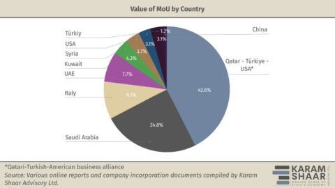 The UAE follows with four companies, including the controversial USD 2 billion Damascus Metro, while Kuwait’s firms disclosed USD 1.1 billion.