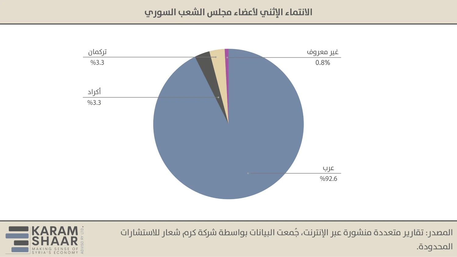 بصورة عامة، يرتبط ضعف تمثيل المكوّنين الكردي والدرزي ارتباطاً وثيقاً بعدم إجراء الانتخابات في المناطق التي يتركّز فيها وجودهما السكاني. غير أنّ الاختلال الأكثر دلالة من الناحية البنيوية يخصّ الطائفة العلوية، ويمكن تفسيره بمجموعة من العوامل المتداخلة، من بينها مقاطعة شريحة واسعة من أبناء الطائفة للعملية الانتخابية في أعقاب المجازر التي شهدها الساحل السوري، ووجود مقاومة فعلية لمشاركة العلويين في العملية السياسية، تجلّت في اغتيال أحد المرشحين في محافظة طرطوس، اضافة— وهو العامل الأهم — عن ضعف تمثيل العلويين داخل الهيئات الناخبة نفسها، التي شكّلت الحلقة الحاسمة في اختيار المرشحين والفائزين.