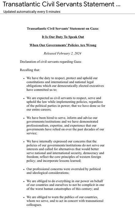 Those working in advocacy have a lot to learn from this statement by hundreds of public servants in Western countries urging their governments to take a principled position on the Israeli war on Gaza.