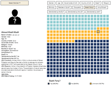 Our interactive tool, which highlights all you need to know about individuals sanctioned by the EU and the US under Syria-related programs, has just been updated to reflect last week’s listings by the EU.