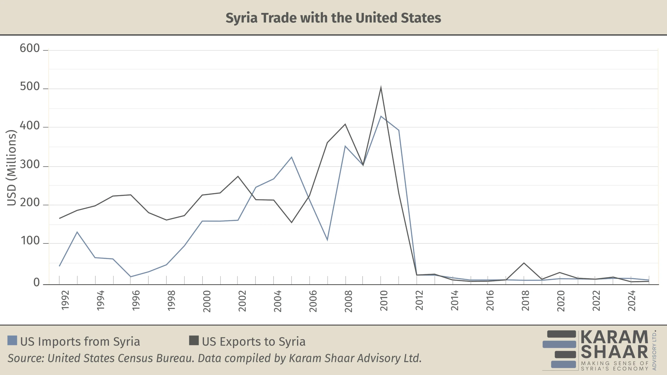 The repeal of the Caesar Syria Civilian Protection Act in late 2025 marked a historic shift in US–Syria relations but did not lead to a recovery in bilateral trade. Although most sanctions and restrictions have been lifted, US–Syria commerce remains constrained by ongoing restrictions, punitive tariffs, financial de-risking, high compliance costs, and other non-tariff barriers.