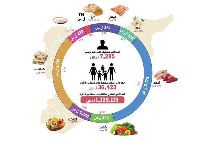 Kassioun, a Syrian website, provides indicative yet useful stats every few months on living expenses relative to the minimum wage.